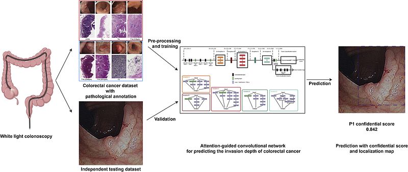 title = {Artificial intelligence- enhanced white-light colonoscopy with attention guidance predicts colorectal cancer invasion depth},